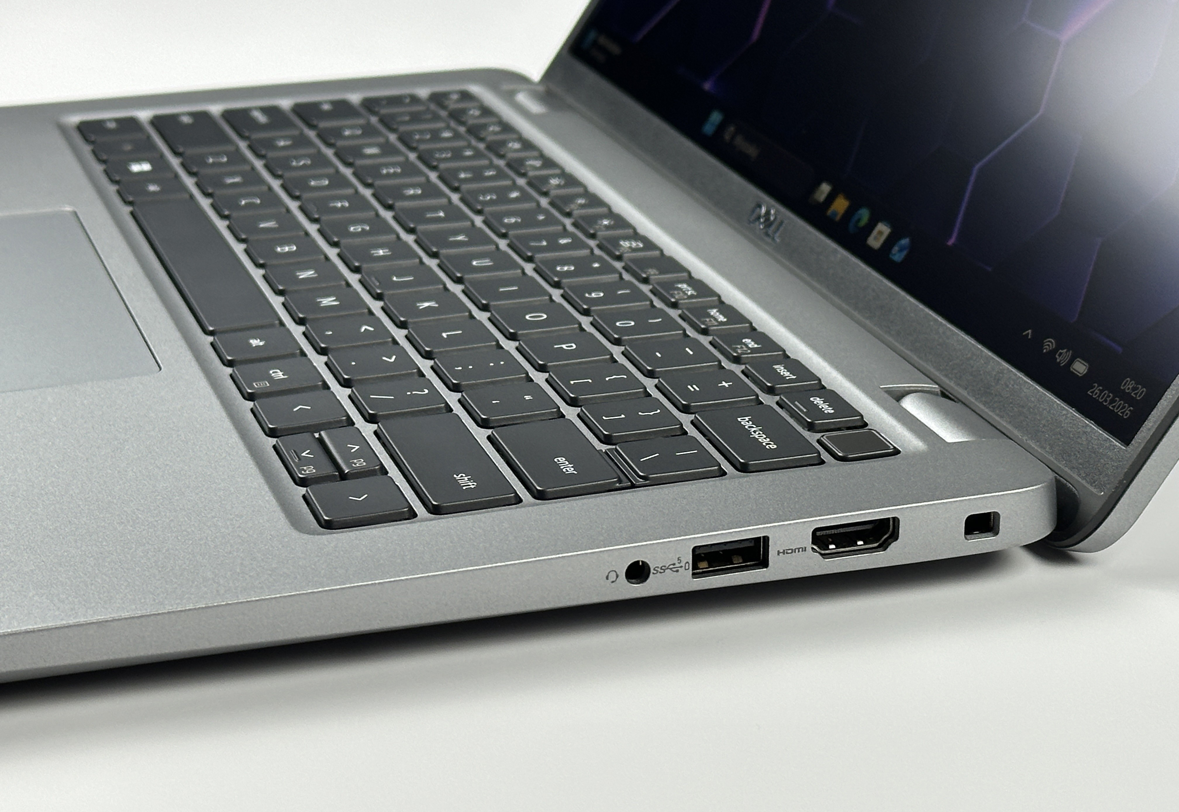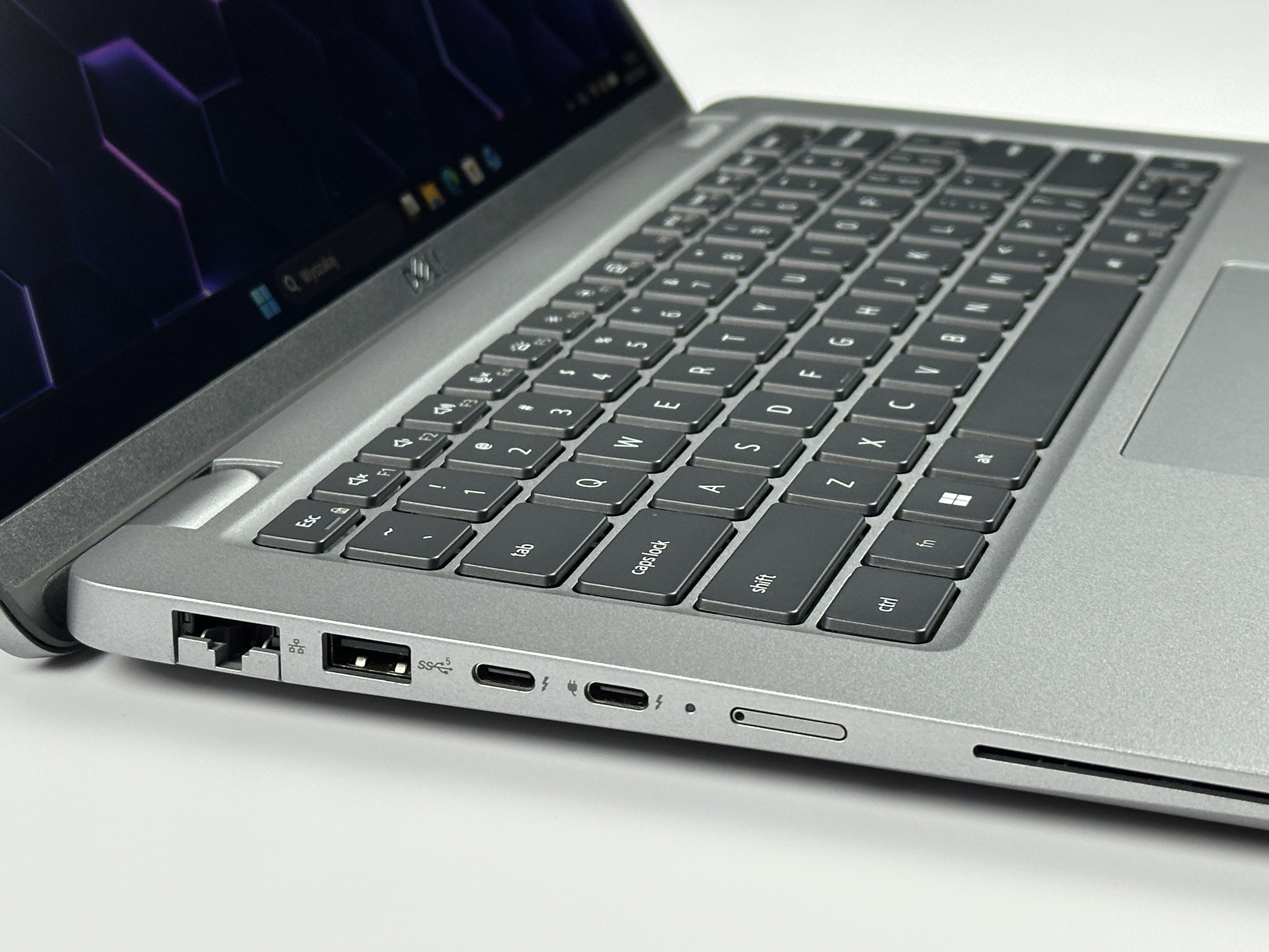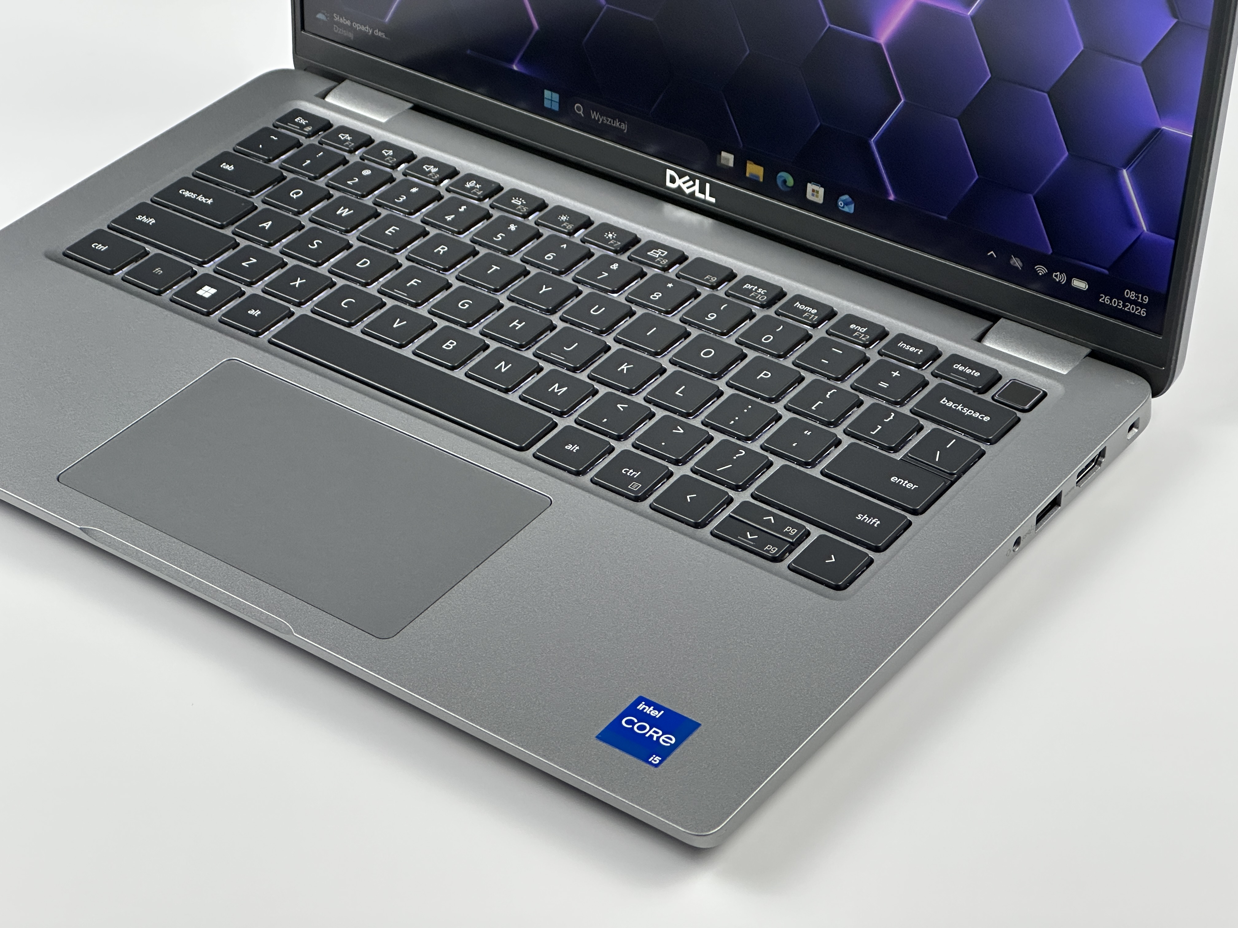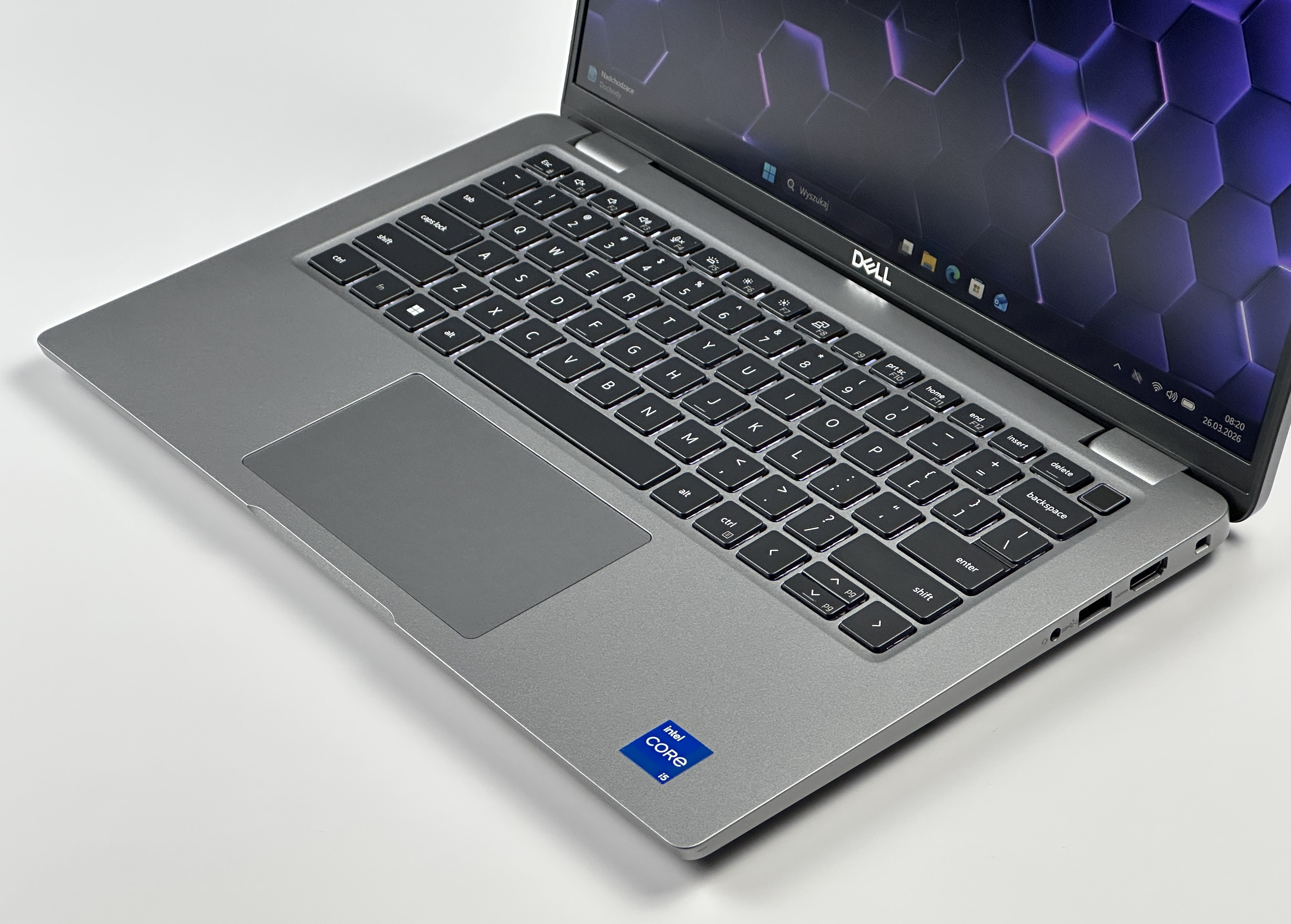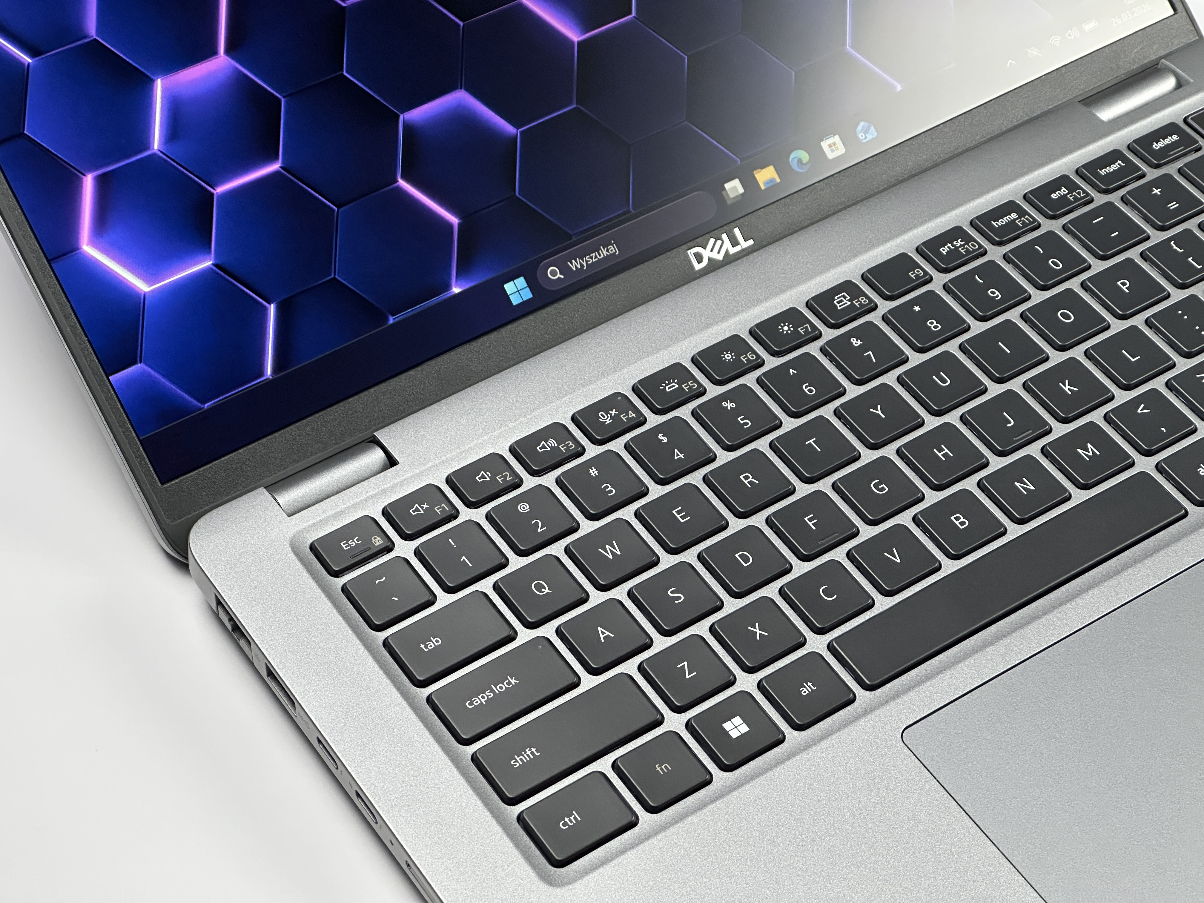 - Klawiatura US (PL QWERTY): Układ amerykański z polskimi znakami łączy wygodę pisania po polsku i po angielsku, dzięki czemu świetnie sprawdza się w środowisku międzynarodowym. Klawiatura zapewnia precyzyjny skok i komfort użytkowania podczas wielogodzinnej pracy.