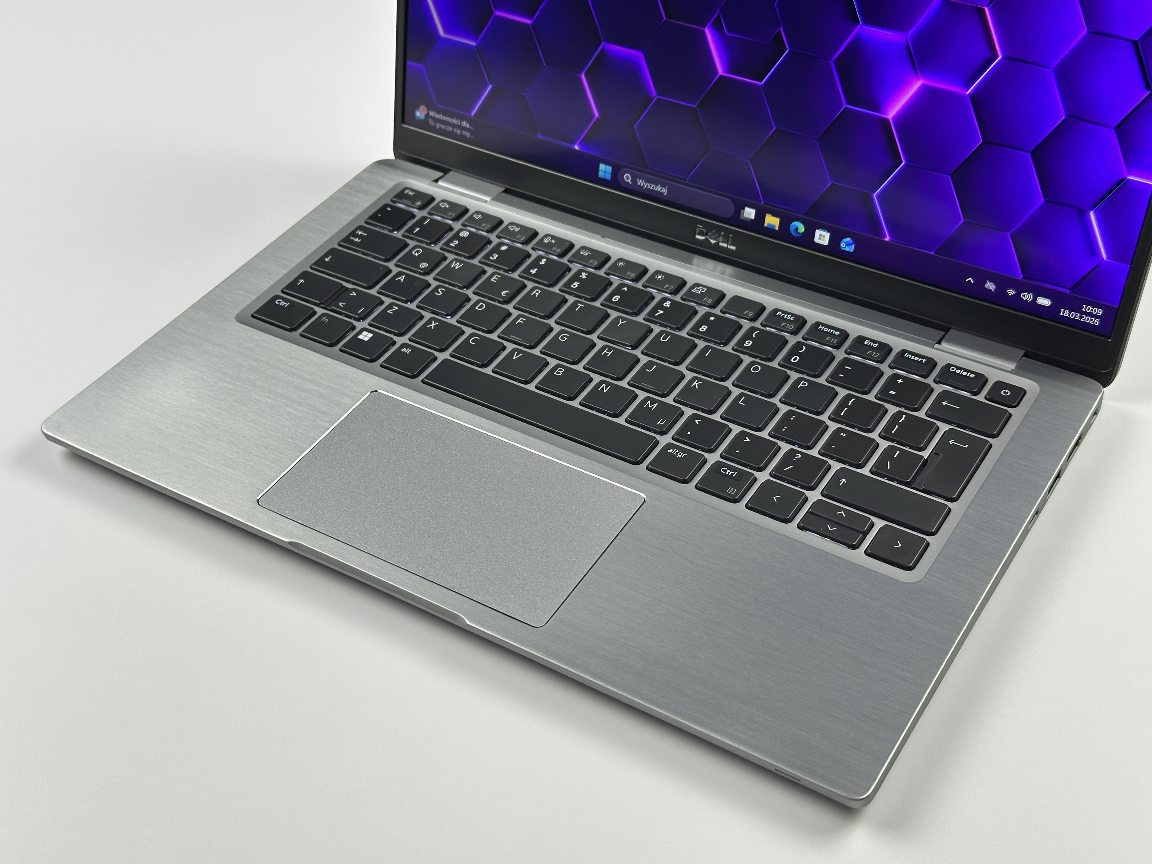 - Metalowa obudowa: Konstrukcja wykonana z metalu podkreśla klasę urządzenia i zapewnia wyższą odporność na codzienne użytkowanie niż typowe obudowy z tworzywa. Taki typ wykończenia dobrze łączy estetykę premium z profesjonalnym charakterem serii Latitude.
