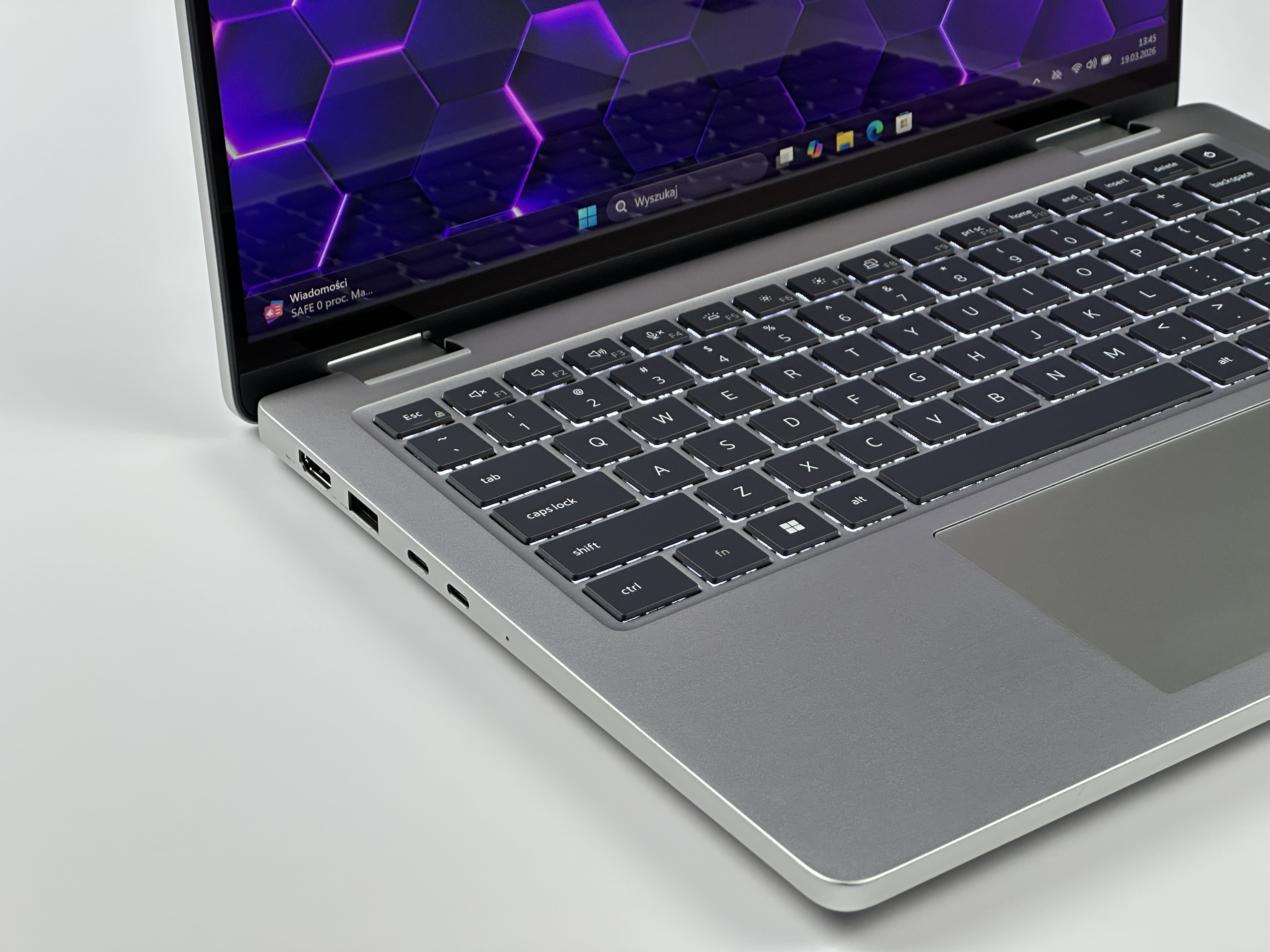 - Klawiatura US – pełne wsparcie PL znaków: Układ klawiatury dostosowany do polskich użytkowników zapewnia naturalne pisanie z pełnym dostępem do polskich znaków. To ważny atut dla osób, które dużo pracują z tekstem.