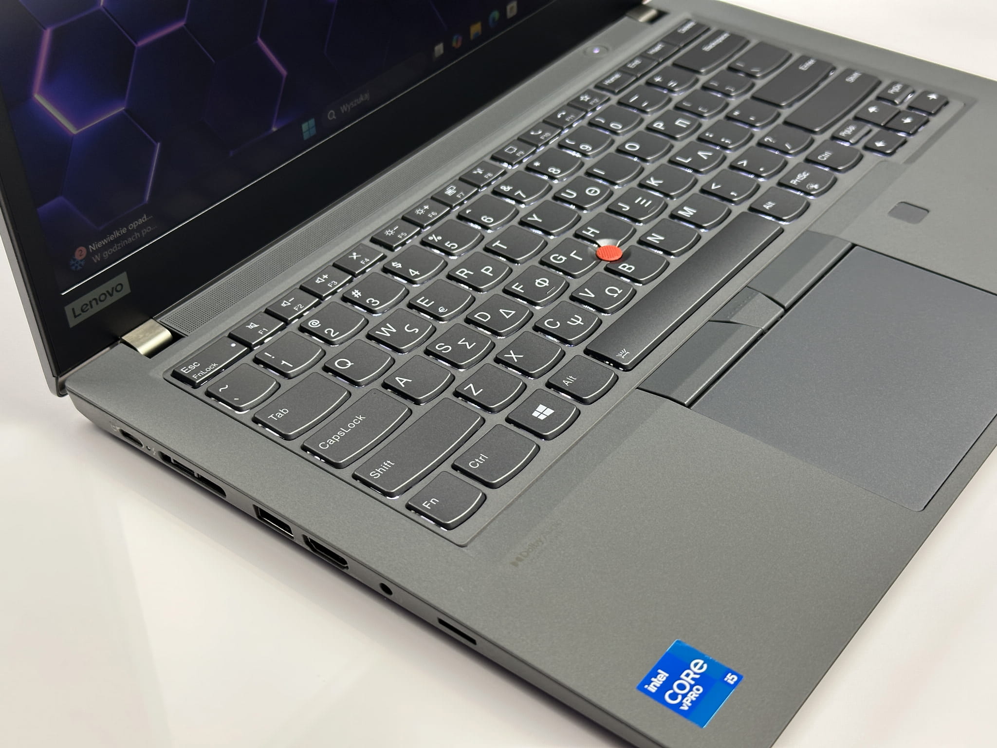 - Biznesowa ergonomia serii ThinkPad: Charakterystyczna klawiatura, przemyślany układ portów oraz wysoka kultura pracy urządzenia sprzyjają długotrwałemu, komfortowemu użytkowaniu. To konstrukcja zaprojektowana z myślą o codziennym, intensywnym wykorzystaniu w środowisku zawodowym.
