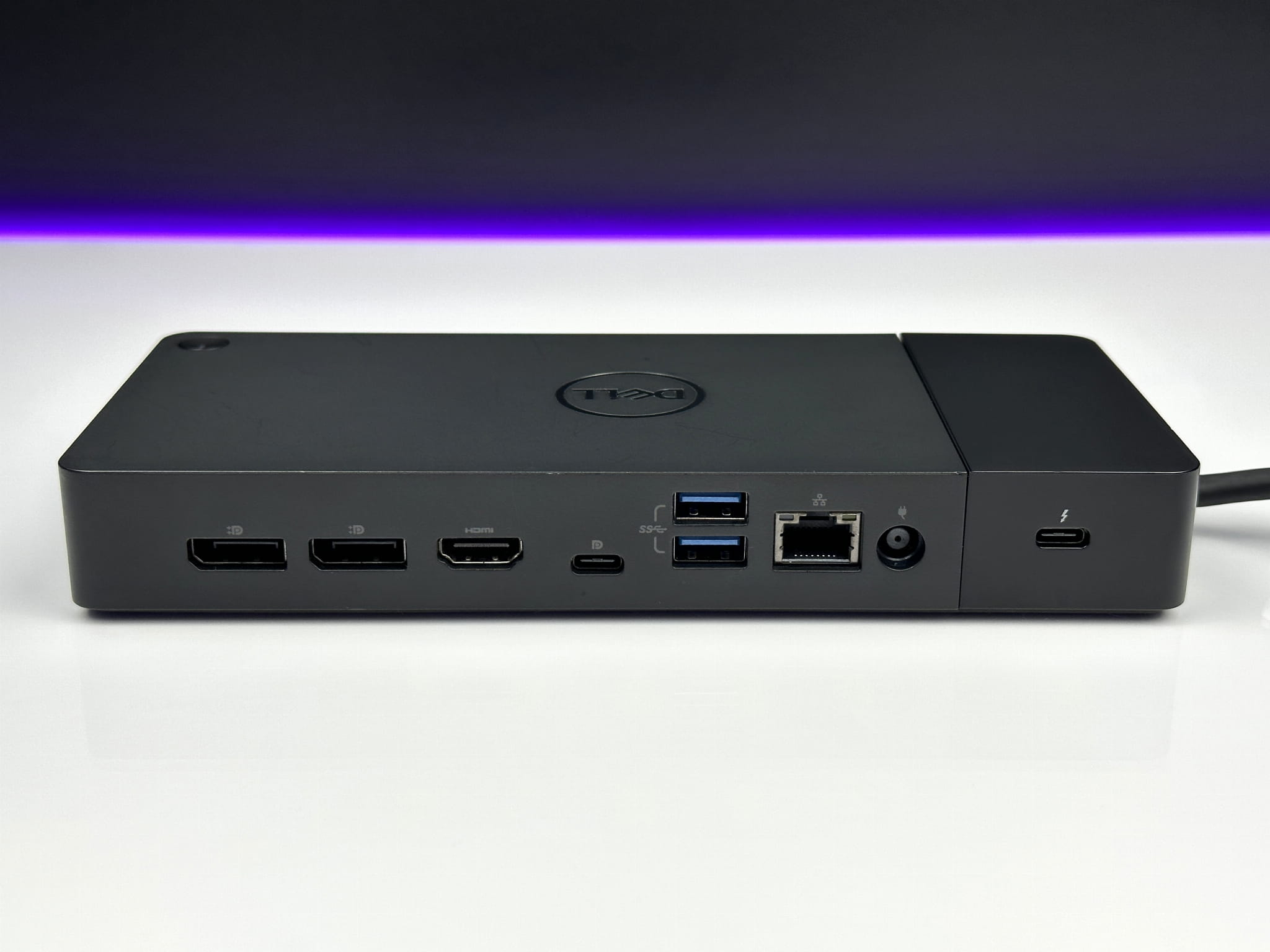 - Nowoczesny i minimalistyczny design: Smukła, czarna obudowa stacji idealnie komponuje się z każdym miejscem pracy. Subtelne logo Dell i wysoka jakość wykonania podkreślają jej profesjonalny charakter.